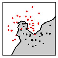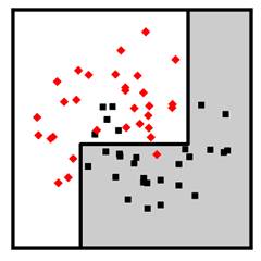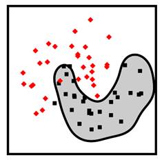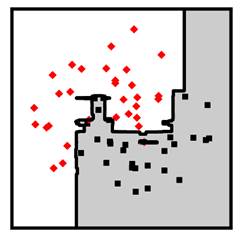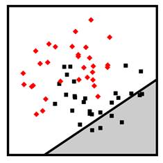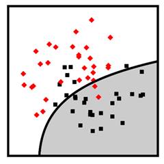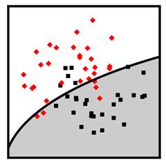 Classifier domains of competence are defined in terms of these three considerations.[4] Importantly, domains of competence are relative notions: does one classification algorithm work better than others?[5] They are not absolute notions, because at the end of the day, the absolute performance is limited by the Bayes optimal risk defined in Chapter 6. For example, one classification method that you tried may work better than others on datasets with a lot of class overlap near the decision boundary, nearly linear shape of the decision boundary, and not many data points. Another classification method may work better than others on datasets without much class overlap near a tortuously-shaped decision boundary. Yet another classification method may work better than others on very large datasets. In the remainder of this chapter, you will analyze many different supervised learning algorithms. The aim is not only describing how they work, but analyzing their inductive biases and domains of competence.
