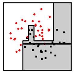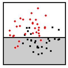 axis. The space is partitioned into a couple of blob-like gray regions labeled