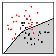 boundary for a two-dimensional feature space is shown in Figure 7.1.